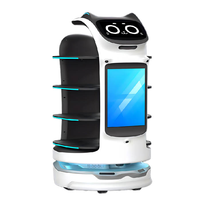 产品介绍:ZC-SC2是一款猫系新奇萌形象、多模态交互、大运载、换电技术等主特性的中高端室内配送产品,在此基础上标配超大广告屏提升广告营销和宣传能力,升级视觉托盘检测以提升托盘检测效果,增加托盘氛围灯提供更清晰的取餐指引。 同时通过增加前视RGB相机增强环境识别能力且支持打招呼交互,搭配VSLAM和激光SLAM